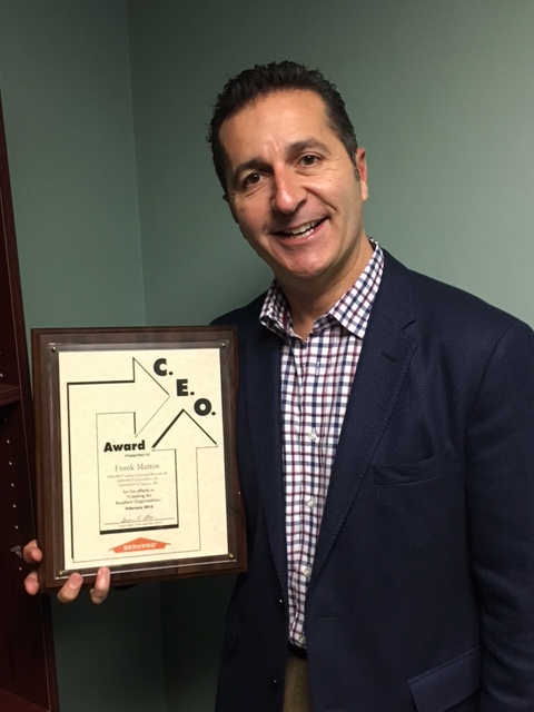 SERVPRO franchise owner Frank Mattos was recently recognized with Servpro Industries, Inc.’s CEO Award for “Creating an Excellent Organization.” The award acknowledges offices with an outstanding work environment, and it is the second time Mattos has received this honor.