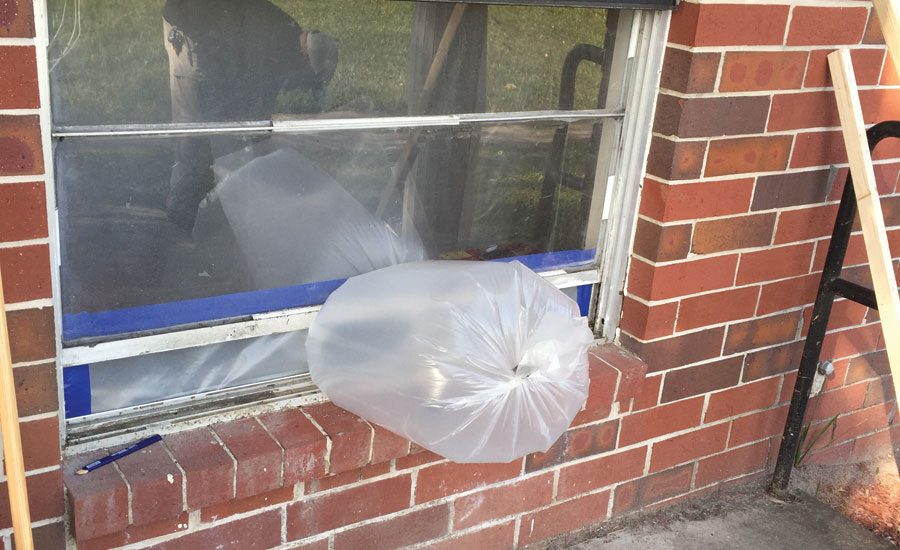 Aside from the massive time crunch, there were some other somewhat unusual risks and hurdles in this job. For one, because most of the apartments were occupied, it was difficult to get access after-hours. Most of the work had to be done during the day, with the very occasional follow-up on weekends. Santana said sometimes tenants would be in their apartments all day, every day, during the remediation process, so setting up containment was sometimes a bit tricky.