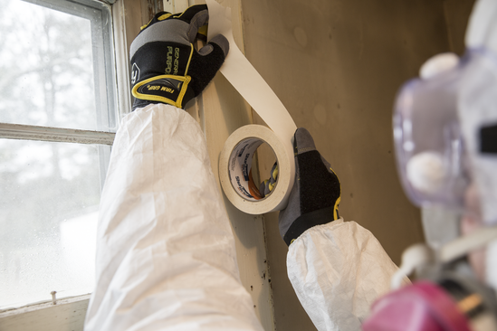 Building containments with duct tape is common, but demands a tape that can adhere very well to both the masking tape that is protecting the surface and to the poly-sheeting. Again, selecting a tape that is engineered specifically for this application can help save time and money.
