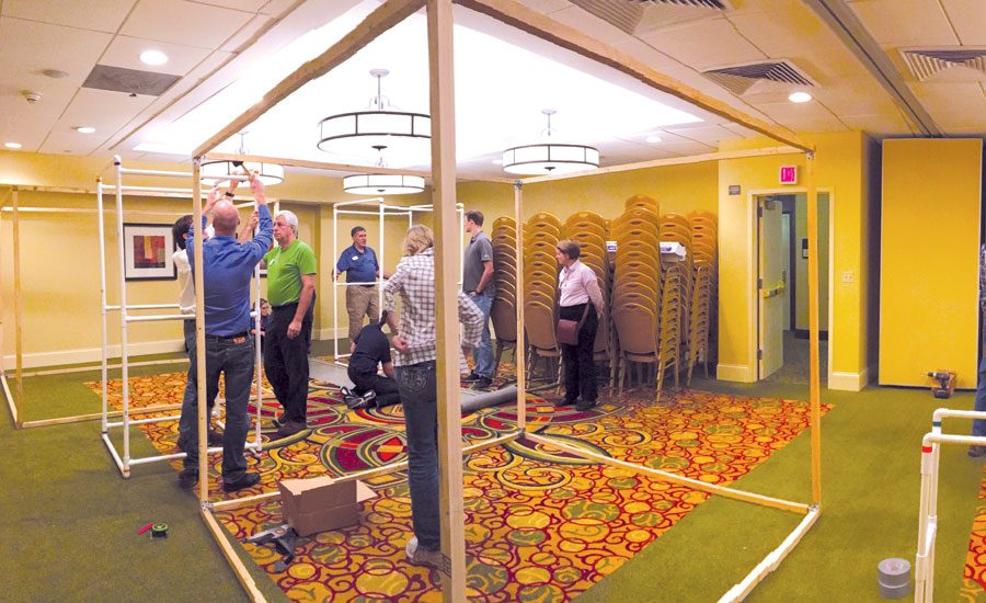 On day three, attendees worked to construct full-size containment and decontamination chambers before the real hands-on cleaning began.