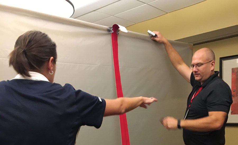 The final day proved to be the most insightful, thanks to well thought-out hands-on training exercises. Much of the day focused on proper PPE, but by late afternoon, attendees were on their hands and knees inside containment structures they built, cleaning blood and gut-stained drywall.