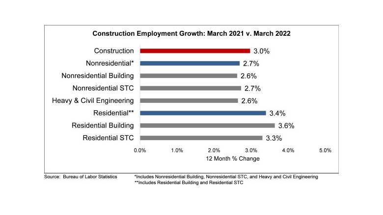 The construction industry added 19,000 jobs on net in March, according to an Associated Builders and Contractors analysis of data released by the U.S. Bureau of Labor Statistics. After 23 months of recovery, construction employment has at last exceeded pre-pandemic levels. On a year-over-year basis, industry employment has expanded by 220,000 jobs, an increase of 3.0%.