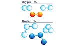 In chemistry, we represent elements with letters (for example “O” stands for the element “oxygen”), and the small numbers to the lower-right of the element indicate the number of atoms of that element in the molecule. For example, O2 represents a molecule that consists of two oxygen atoms, which is the stable form of “regular” oxygen. O3 represents a molecule that consists of three oxygen atoms, which is the unstable form of oxygen called ozone.
