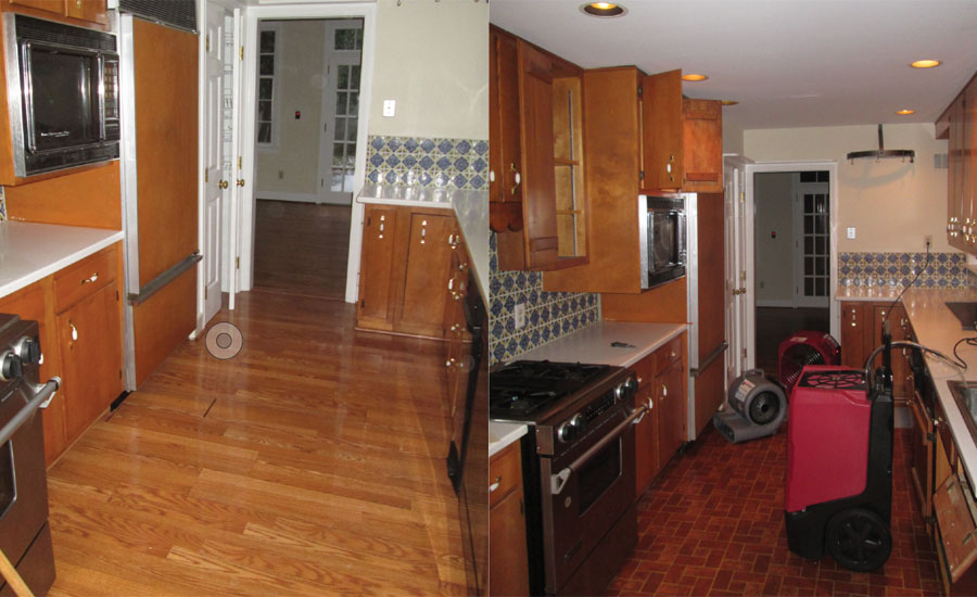 A look at the kitchen before and during the drying process. (Photos courtesy of Niki Francis Restorations)