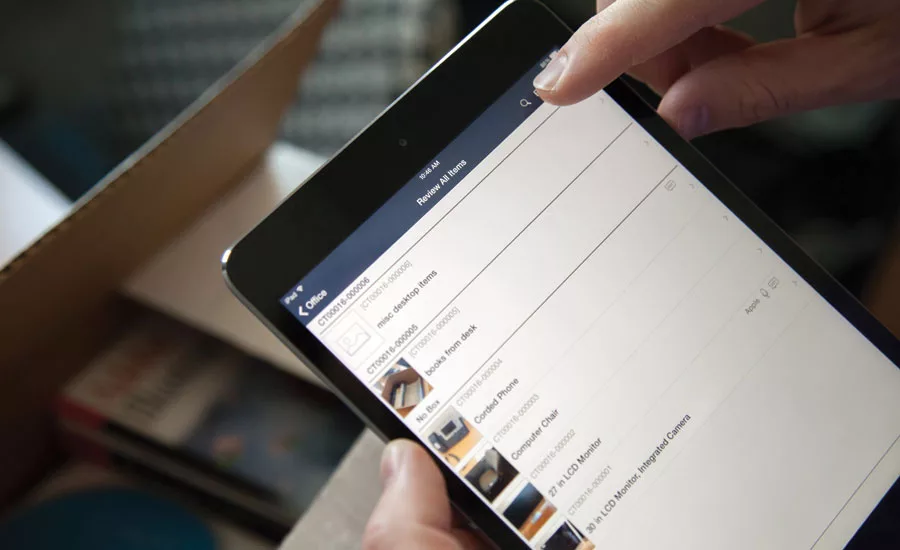 Using mobile devices to inventory a pack out make the job easier, and also collects business-related data that can then be analyzed to help understand and improve overall business practices. Photo courtesy of Xactware.