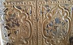 The project itself was fairly simple. Once the determination was made that the paint did not contain lead, a protocol was established for stripping the paint by blasting with walnut shells. Crushed black walnut shell propelled by compressed air – clean, green, and simple. The process was fast and effective – removing multiple layers of paint quickly (about 5 square feet per minute) with no damage to the surface of the stamped panels. (See pictures #4 and #5) Clean-up was limited to sweeping and vacuuming and the end result was truly a restoration of the former condition.