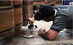 An experienced restorer repairing the water-damaged base of a piece of furniture.
