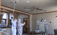 Restoration and remediation companies have several challenges when choosing the correct PPE for a restoration project. Most will use an SMS or polypropylene fabric in a lab coat, coverall, bouffant cap, shoe covers, sleeves, and masks. SMS gives good protection for fluid resistance and hold out while still achieving a breathable comfort level. Polypropylene is used in areas where protection is not critical, such as dusty or dirty areas free of hazardous materials. This is the most breathable and comfortable option.