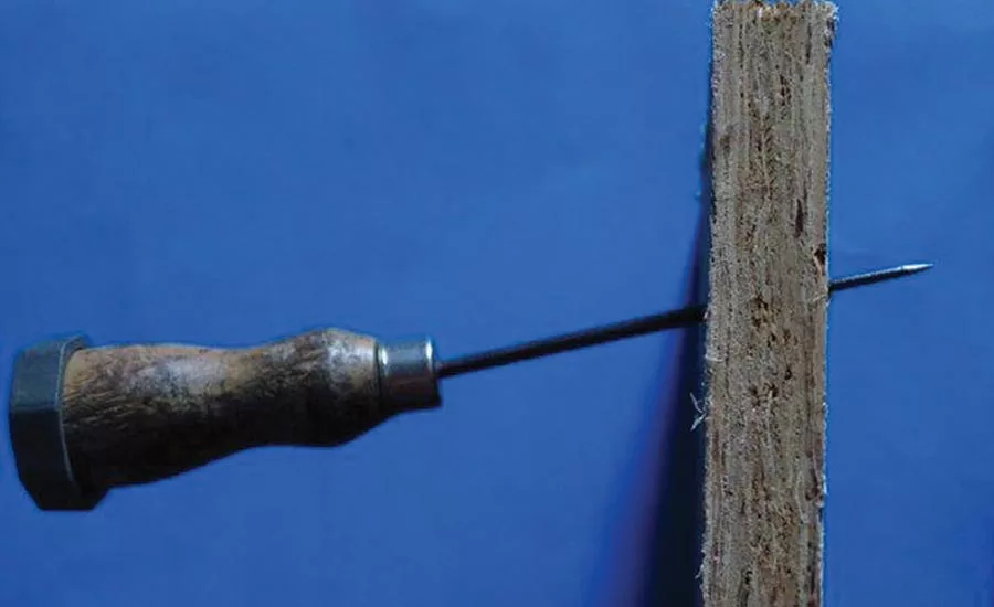 There is a rather simple field test to perform on OSB using an ice pick or awl. By depressing the ice pick into the OSB, if it penetrates through the other side by ¼ to ½ inch, this subfloor has lost its fastener retaining abilities. If the ice pick penetrates half the thickness of the panel material generally suggests it has normal fastening retention capabilities. If the ice pick penetrates through the OSB there are only two choices available for reinstallation of a wood floor. The first option would be is to remove existing OSB and replace it with a higher performance grade OSB. The second option is to use a full spread adhesive to glue and nail assist to install a new wood floor.