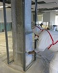 By February 2015, after intense competition, a restoration contractor was selected that would oversee the painting, and a local painting subcontractor would be spraying the smoke sealer onto the fireproofing. The engineers were able to develop and supplied a scope of work with technical assistance from Fiberlock, which also supplied factory-trained personnel for the final two stages prior to full scale application: Field Testing and Field Training. Testing at the site for any significant size project is always recommended because of the unique nature of every fire, plus the type of fireproofing, and multiple other variables. In-place field testing, with the actual cleaning technique, surface porosity and profile, is also then costs are finalized. Tests reveal the coverage rate per gallon, and in turn sharpens the numbers for estimating material and labor cost.