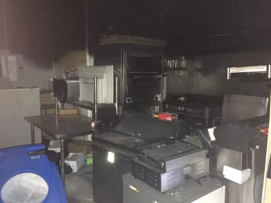 The fire originated in the kitchen from a chemical reaction and the entire kitchen had to be removed and replaced including all of the commercial appliances. The hallway, locker rooms, kitchen and bar were by far affected the most; the volleyball and basketball courts as well as the soccer field were affected moderately. The fitness center and offices were the only areas where hardly any damage occurred.