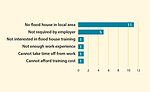 Restoration professionals are not participating in flood house training due to barriers (See Figure 4). For example, 55 percent of the restoration professionals answered, “no flood house in local area.” The barriers to flood house training can be money, time, work experience, interest, employer, and local area resource.