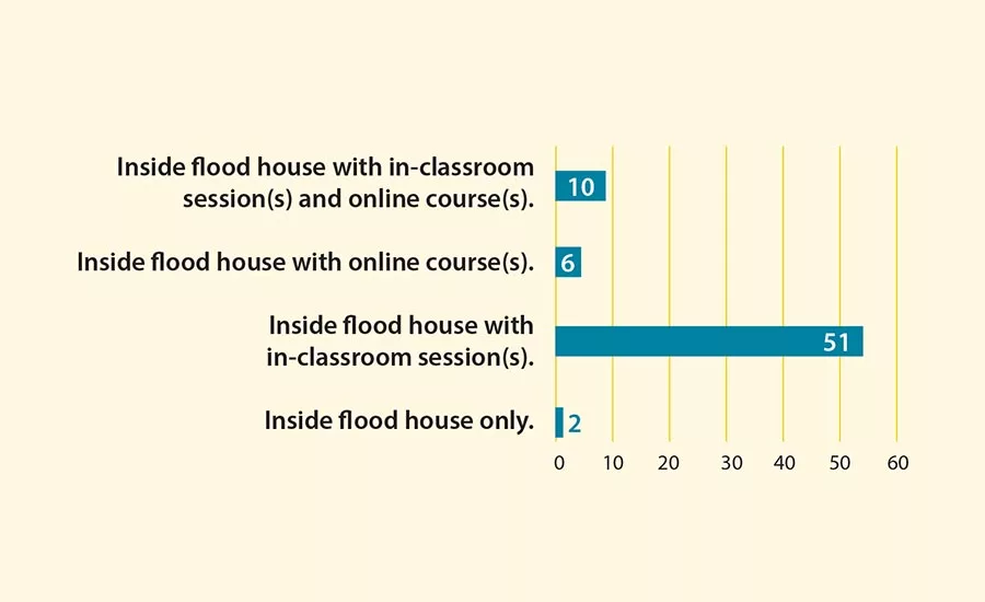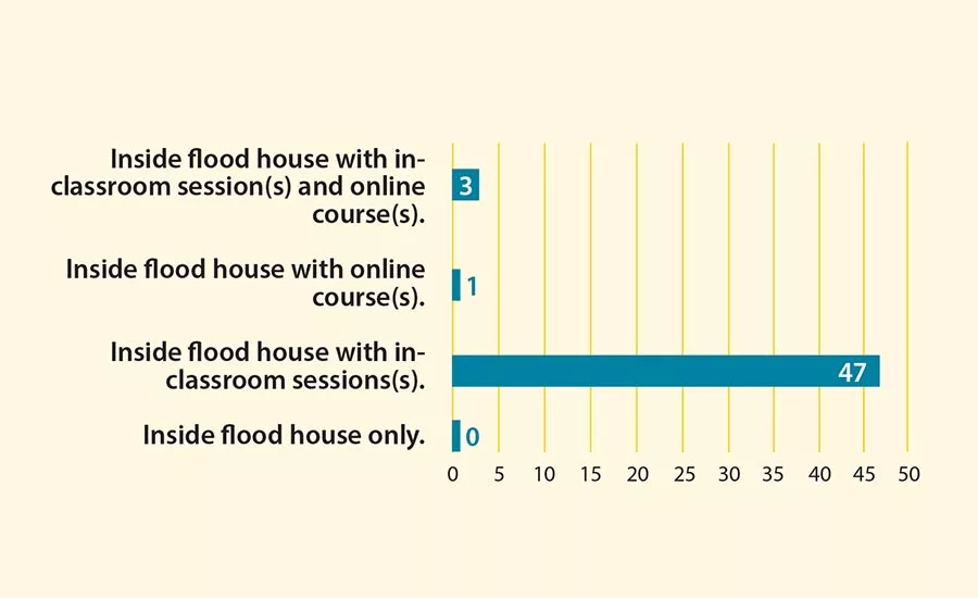 Instructors provide different educational delivery methods for this type of training (See Figure 6). Nearly everyone of the restoration professionals received “inside flood house with in-classroom session(s).” Employer and non-employer instructors use a combination of educational delivery methods for flood house training.