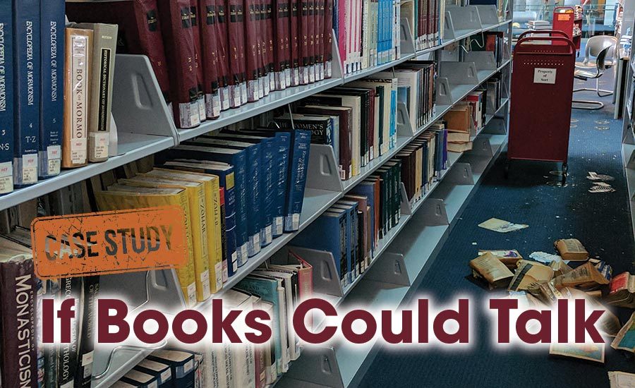 On the evening of the event, there were many people on the scene evaluating the damage caused by the sporadic and brief micro-burst. The general manager for Integrity was onsite early and saw what may be the biggest contents job of his life. Frank Oviedo didn’t waste much time. He began preparations and had his crew securing as many assets on the property as possible with plastic tarps. His long night turned into several weeks of command center meetings with government officials, police, fire, security, insurance representatives, and restorers. Once the dry-out was complete, Frank oversaw a year-long effort to move and relocate books and media equipment to a temporary location that would serve the community for the next year.