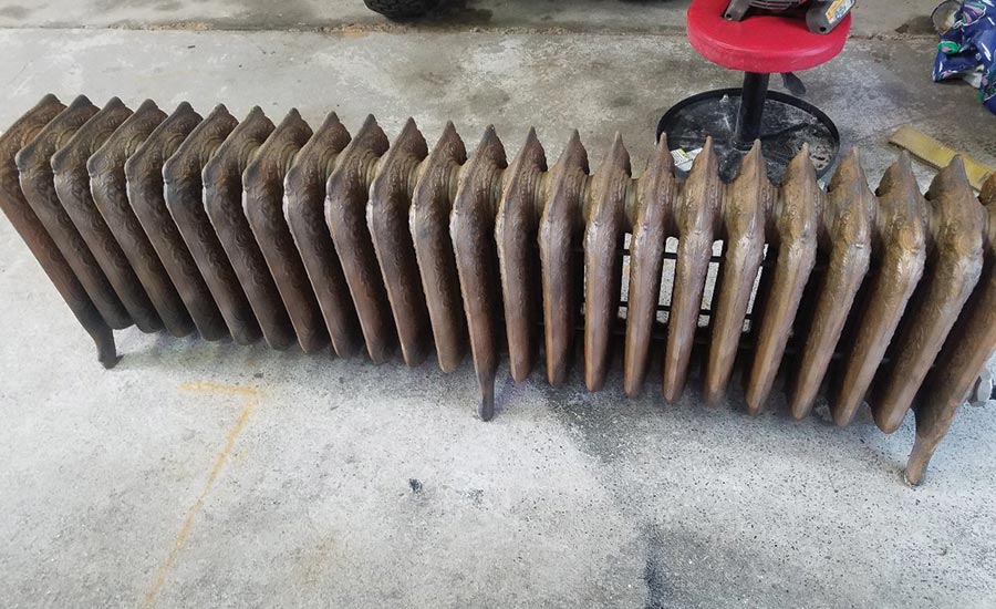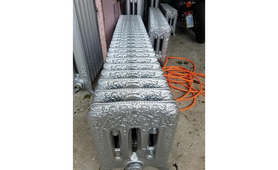 Like your own favorite tool in your own toolbox, vapor blasting is a tool that performs more than just one task. Blasting with wet media can really expand the boundaries of your restoration horizons. Rarely does a customer purchase a blasting system without asking me, “what else can we do with this?” I’ve always answered with the same response – two things you can do; 1) expand what you do for your current customer base, and 2) find a way into new customers, maybe the industrial base around you. I have to also admit, it helps to have an ace up your sleeve. Vapor blasting doesn’t use glass exclusively, but many different media. From baking soda, to walnut shells, to harsh slag abrasives, vapor blasting stretches your restoration ability. Refinishing historical metal components (See photos 9 and 10) is just one example of this tool’s versatility for your current customers. Industrial customers can also offer a distinctly new and different revenue stream for restoration contractors. Blasting industrial applications – whether a municipal wastewater plant, or a local manufacturer’s processing tanks (See photo 11) – vapor blasting can expand your business by providing others with a dustless alternative to traditional media blasting. See photo 12.