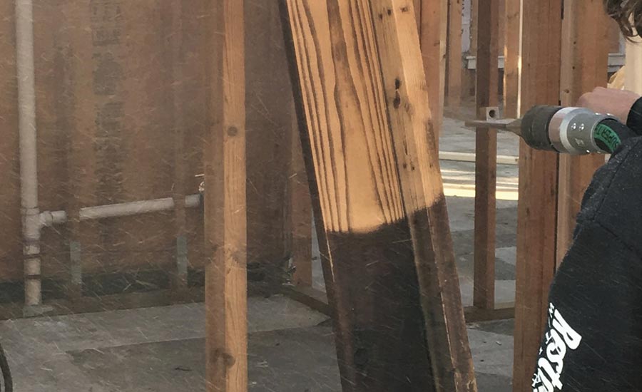 Recently a customer called with a situation involving massive, wide-spread mold growth in a new home construction project. When a builder used wet lumber – a result of massive rains at just the wrong times – it caused a massive outbreak of mold growth in a complicated custom home. See photos 1 and 2. The customer demanded action – thorough and complete remediation! Many budget-minded remediators might run to the chemical closet for a chlorine or peroxide oxidizer hoping to kill the mold and lighten the staining on the wood. This contractor recognized that his clients were not only demanding a non-chemical solution, but a protocol based on the science of source removal. The clients were also concerned about the use of chemicals - agents strong enough to kill. Mold remediation with dry ice blasting remains one of the most effective methods for removing mold, hyphae and the staining it causes on many building materials. See photo 3. Blasting dry ice pellets with compressed air abrasively removes the mold, allowing a simple, follow-up vacuuming of the surface to provide a thoroughly clean surface. As most know by now, the dry ice leaves no secondary waste to add to the task of clean up. This tool is a known producer on mold losses.