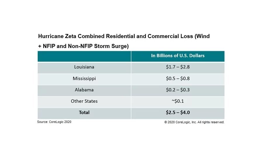 CoreLogic Estimates $2.5 Billion to $4.0 Billion in Insured Losses from Hurricane Zeta Wind and Storm Surge
