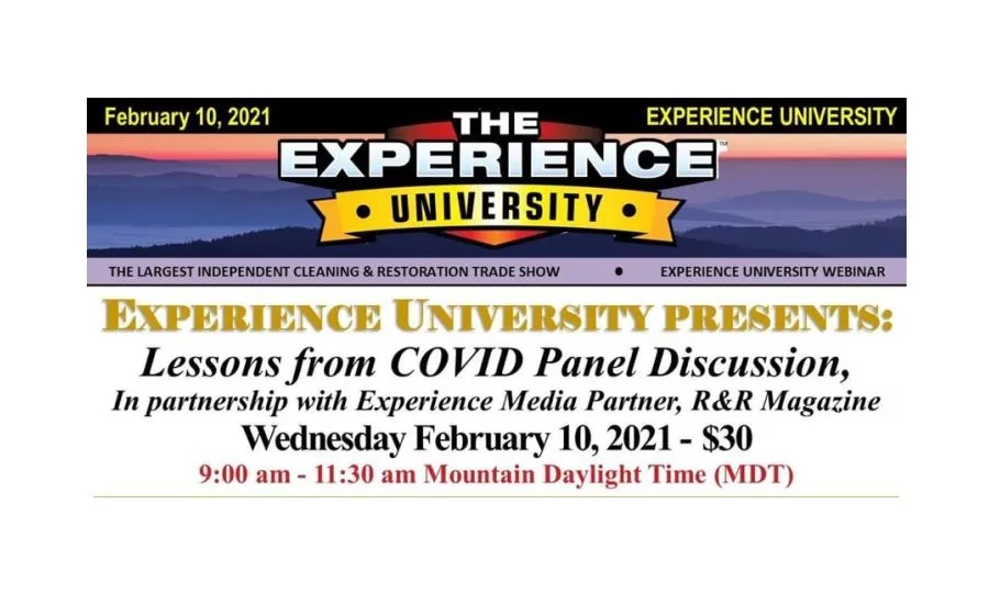 As the world came to a halt in early 2020 due to the COVID-19 pandemic, the restoration and cleaning industry seemed to speed up. While many companies saw a decrease in calls for water losses and mold jobs, there was a visible uptick in interest for cleaning and disinfection services. On Wednesday, Feb. 10, join this live webinar from 9 to 11:30 a.m. MT, brought to you by The Experience and R&R.