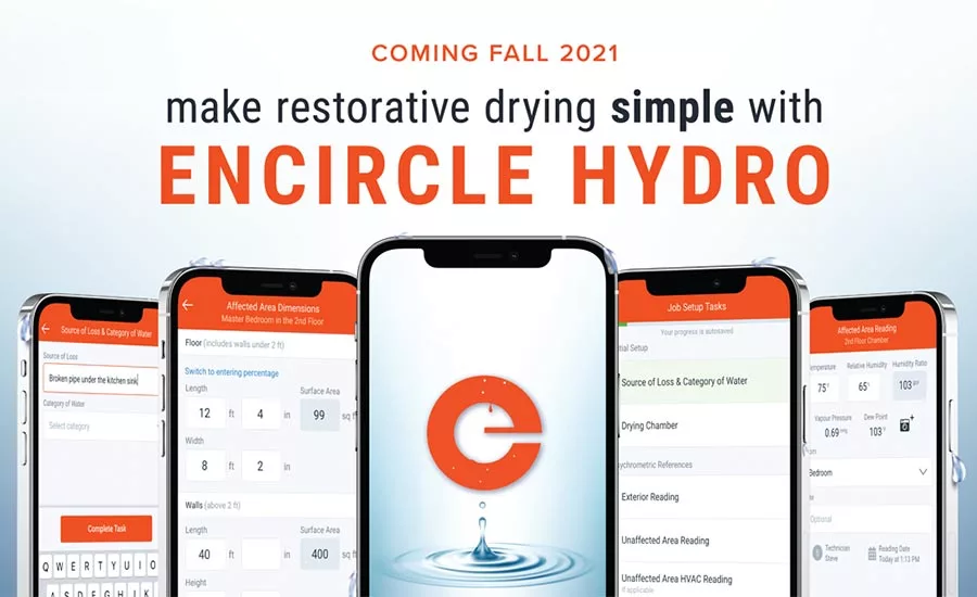 Encircle, the all-in-one field documentation tool for restoration contractors, has unveiled a new feature for restorative drying called Hydro. Demonstrated to the industry for the first time at The Experience show in Las Vegas, Hydro is designed to simplify water damage restoration by helping restorers create a drying plan, establish dry standards, and log moisture and psychrometric readings. It will be available in Fall of 2021 for all Encircle customers at no additional cost.