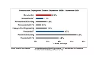 Construction employment rose by 22,000 in September but has shown little net change thus far this year. Employment in construction is 201,000 below its February 2020 level.