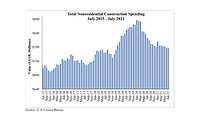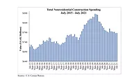 National nonresidential construction spending fell 0.7% in December 2021, according to an Associated Builders and Contractors analysis of data published today by the U.S. Census Bureau. On a seasonally adjusted annualized basis, nonresidential spending totaled $820.7 billion for the month.