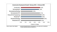 The construction industry added 19,000 jobs on net in March, according to an Associated Builders and Contractors analysis of data released by the U.S. Bureau of Labor Statistics. After 23 months of recovery, construction employment has at last exceeded pre-pandemic levels. On a year-over-year basis, industry employment has expanded by 220,000 jobs, an increase of 3.0%.