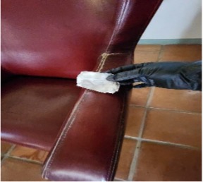 In post-WUI fire assessment, as a screening method, a composite sample may be collected on leather, fabric furniture and other soft goods, where the data may actually be underestimated or under representative of the actual level of metals present. The data may help during a triage assessment, determining whether leather, fabrics and other soft goods are contaminated. (Photo: Patrick Moffett)