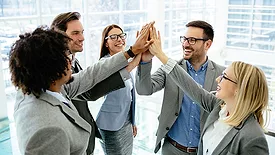 Excited business team gives high-five