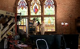 SERVPRO of Southeast Nashville responded to a historic church after a fire damaged a large portion of its sanctuary. A heater caused the curtains to catch fire, which spread to the walls, damaging drywall, plaster, the stage, roofing tiles and deposited smoke and soot onto the pews, throughout the structure.