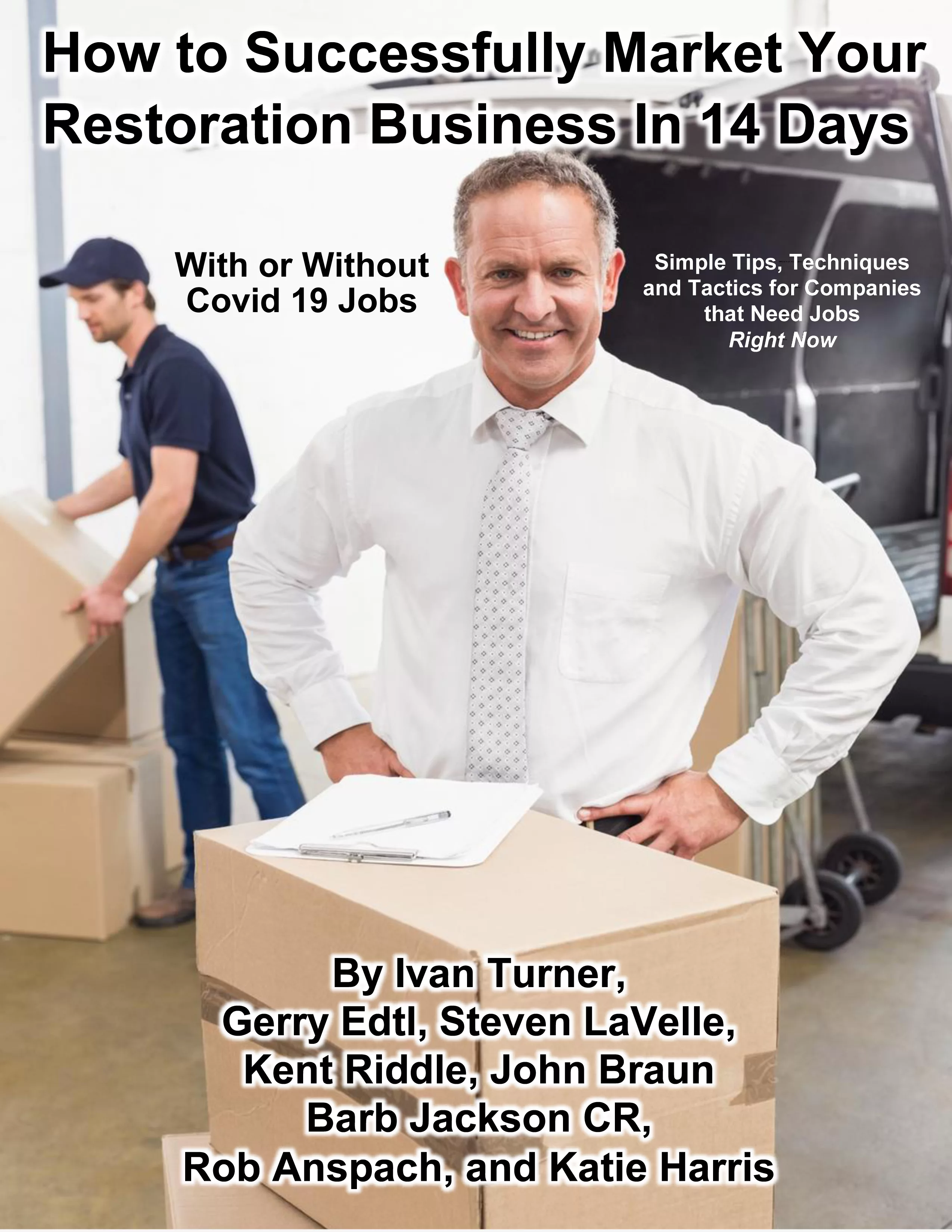 - Consultant/Trainer Ivan Turner says, “Fly me to any city in the U.S., drop me off at any restoration company and with these techniques I can have your staff selling and closing jobs in just 14 days – how do I know? I’ve been doing it for years. I just did it a few weeks ago with two rookie sales people who knew almost nothing about the industry… I flew to Louisiana and trained them for 7 days, then we hit the streets and made some of the easiest sales I ever had.” Then he wrote two chapters telling step-by-step how to do it for yourself! Pages 15 and 110